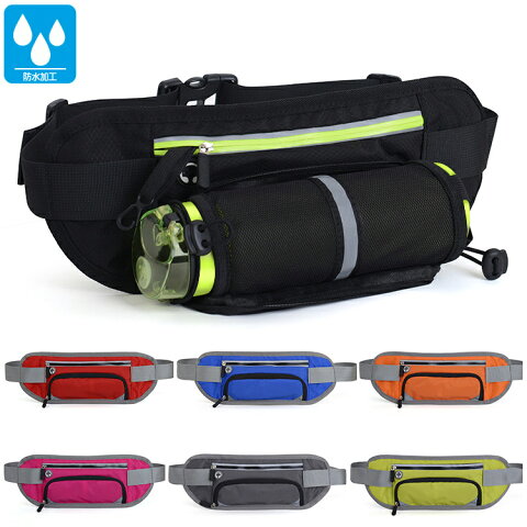 シンプル ランニングバッグ マラソン 給水ボトルポケット付き スマートフォン ウエストバック 揺れない ボトルポーチ ランニングポーチ ウエストポーチ 防水